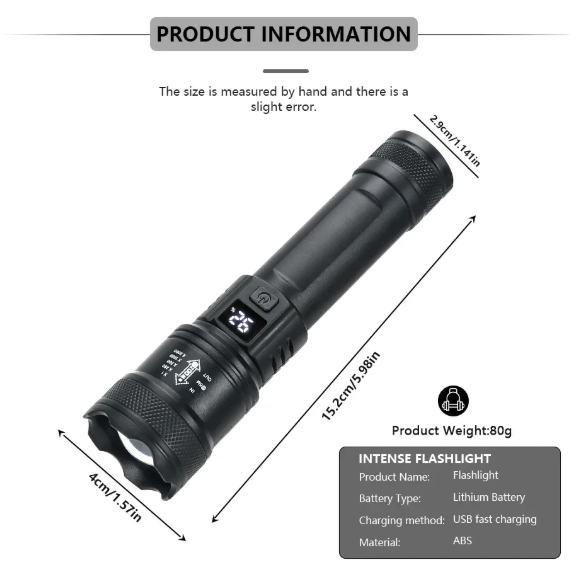 Powerful P70 Led Flashlights 5000LM Ultra Bright Tactical Light Emergency Spotlights Telescopic Zoom Light Built-in Battery